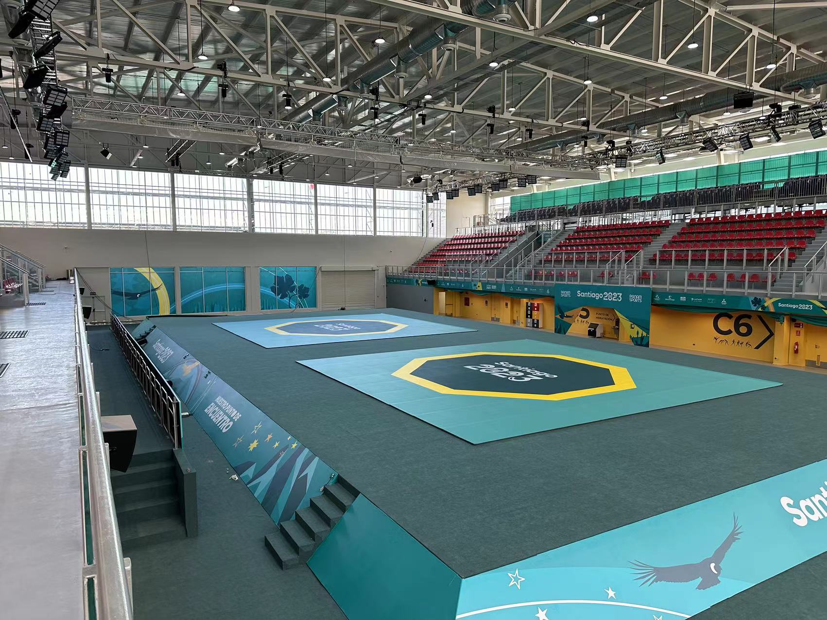 2023年10月20日至11月26日,泛美运动会和残疾人赛事将在智利首都圣地亚哥举办,共有来自41个国家的约9000名运动员参赛。K8凯发体育提供的柔道、摔跤、空手道、跆拳道、拳击、残疾人柔道、残疾人跆拳道、盲人足球、铁人三项、皮划艇等器材已亮相泛美运动会赛场,正在紧张有序安装中。