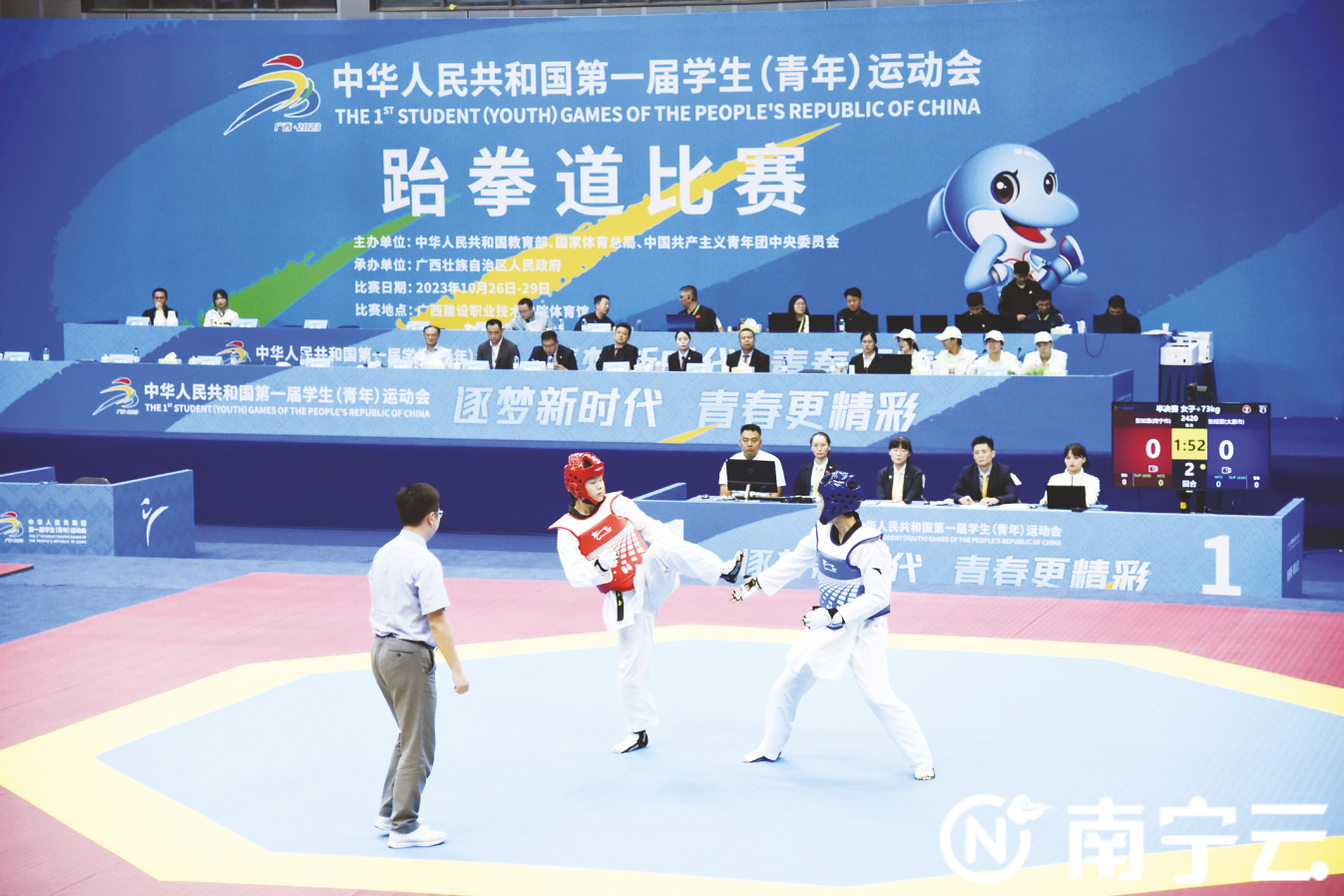 近日,第一届全国学生(青年)运动会跆拳道比赛在广西开赛。来自全国50支代表队共计193名优秀青年选手汇聚一堂,在K8凯发体育提供的跆拳道系列器材上展开激烈角逐。