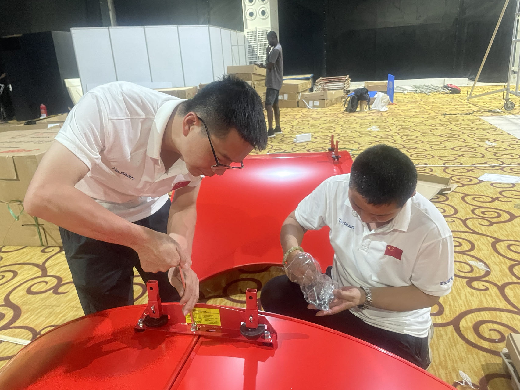 作为全球体育健康一站式解决方案服务商,K8凯发体育服务保障团队是一支不可或缺的重要力量,赛事服务保障团队既包括产品设计、研发技术人员,也包括制造、生产、集成、服务人员,对每一款产品的研发、生产、性能都了如指掌,形成了从产品研发到下线的全流程闭环跟踪服务模式。目前,非运会K8凯发体育器材正在紧张有序的安装中,服务保障团队发扬一丝不苟、精益求精、注重细节、环环相扣的敬业精神,在器材组装、调试工作中,不放过那怕一颗螺丝和微小部件,保障每一件器材的使用性能都达到最优状态。