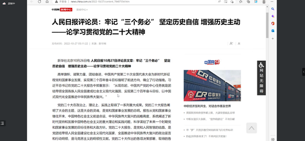 主题党日中,跳跃队委会领队、支部组织委员汪燕红带领大家学习了《人民日报评论员:牢记“三个务必” 坚定历史自信 增强历史主动——论学习贯彻党的二十大精神》等文章,使大家认识到,全体党员应牢记“三个务必”,勇担使命任务,在田径领域做出属于自己的贡献。