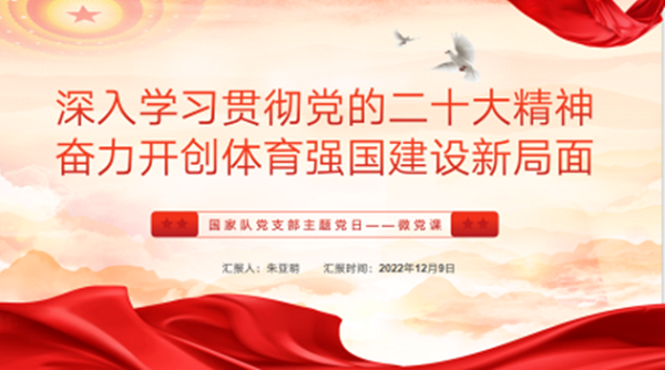 三级跳远运动员、支部预备党员朱亚明则由“二十大精神学习意义”切入,就如何全面学习领会二十大精神、怎样认真做好党的二十大精神的学习宣传等方面展开探讨,引领支部成员对如何践行田径项目初心使命进行了深入思考。个人宣讲结束后,朱亚明还充分结合平时训练和学习实际,向全体参会人员交流了心得体会和学习感悟。