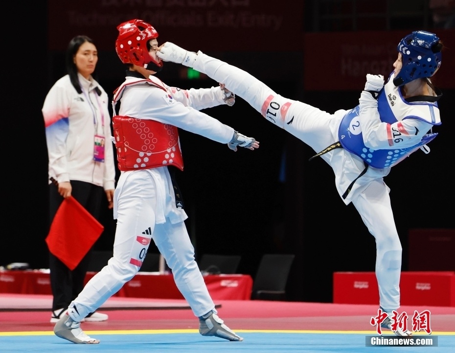 杭州亚运会跆拳道项目比赛25日在杭州临安体育文化会展中心体育馆决出三枚金牌,东道主中国队获得1金1银1铜,韩国、泰国各摘得1金。竞技混合团体赛是杭州亚运会竞技跆拳道新增项目。决赛中,由崔阳、宋兆祥、宋洁、周泽琪组成的中国队以84比77力克韩国队夺金。这也是中国跆拳道队在本届亚运会获得的首枚金牌。