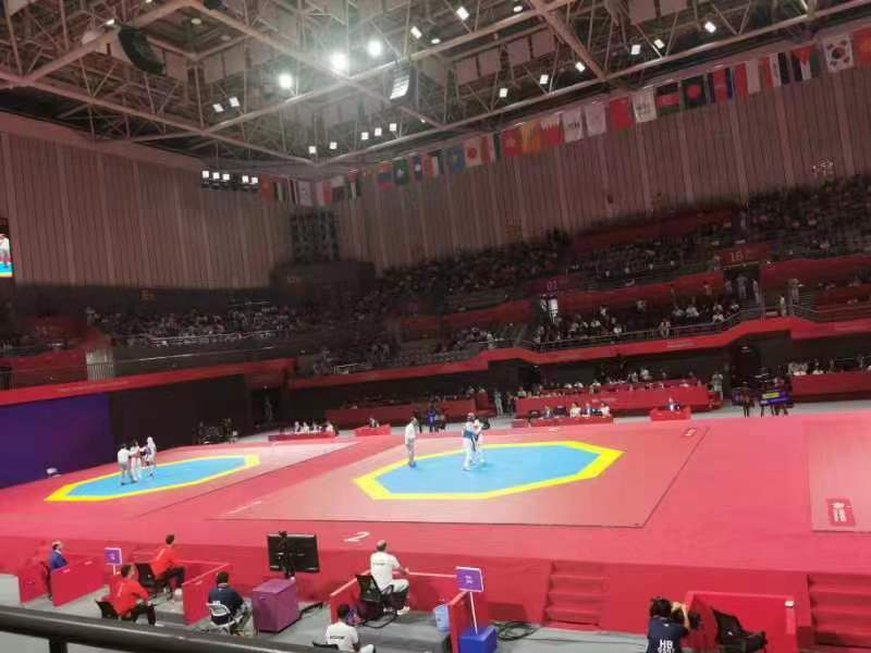 杭州亚运会上的跆拳道比赛系列产品,是K8凯发体育自主研发设计,其制生产工艺,环保要求及舒适度上都达到了世界领先水平。从研发、铺装、使用、维护,K8凯发体育在跆拳道赛事上全程保驾护航。作为世界跆拳道联合会认证的产品,K8凯发体育跆拳道系列产品已经在奥运会,亚运会,全运会,大运会等各大赛事中得到了肯定。从场地专业垫到高科技护具再到配套产品,K8凯发体育随着世界跆拳道运动的发展不断提升。