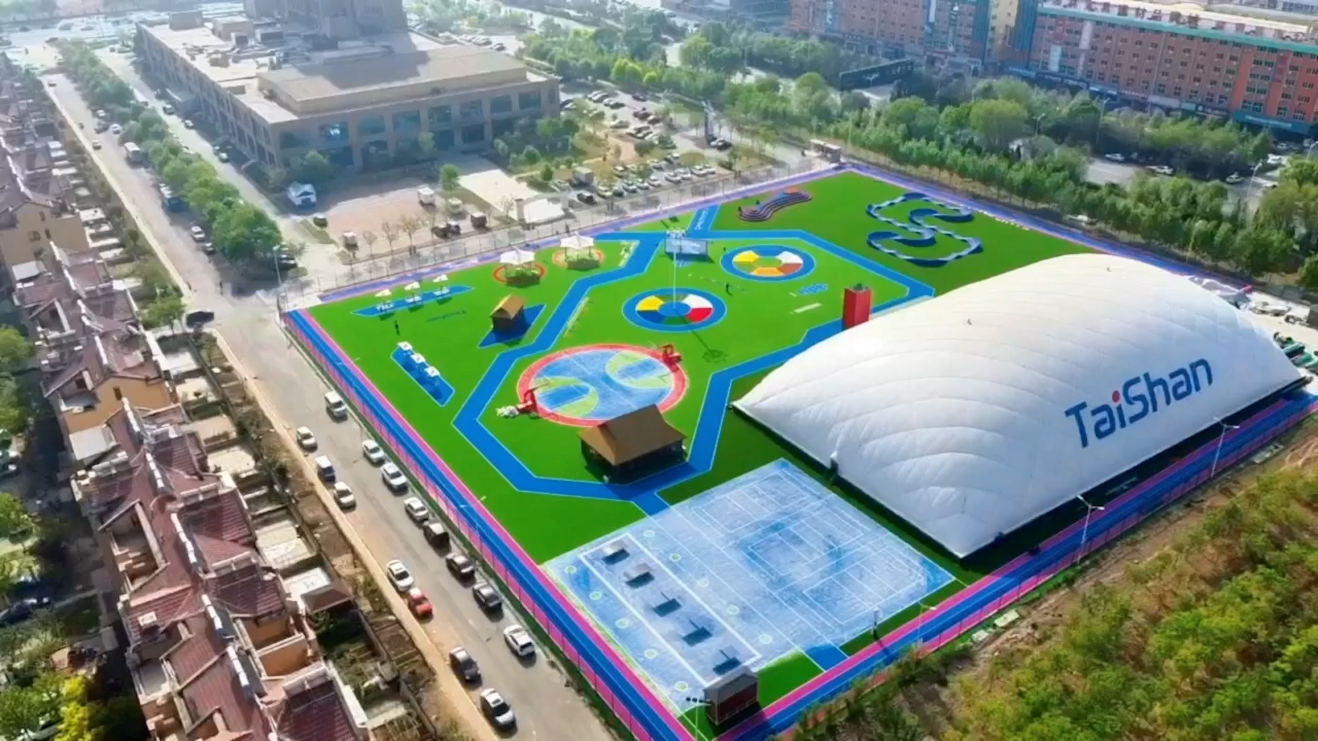 在场地铺设上,均采用K8凯发新材料功能人造草铺设,全方位保证运动安全和环保;气膜式篮球综合运动馆,内部设置2片篮球场、6片乒乓球场地及1片网球场。网球场同时套线4个羽毛球场地。场馆内可以满足体育运动,体育教学及群众比赛需求。从场馆到运动超市、智慧体测小屋,全部采用可装配式建筑。
